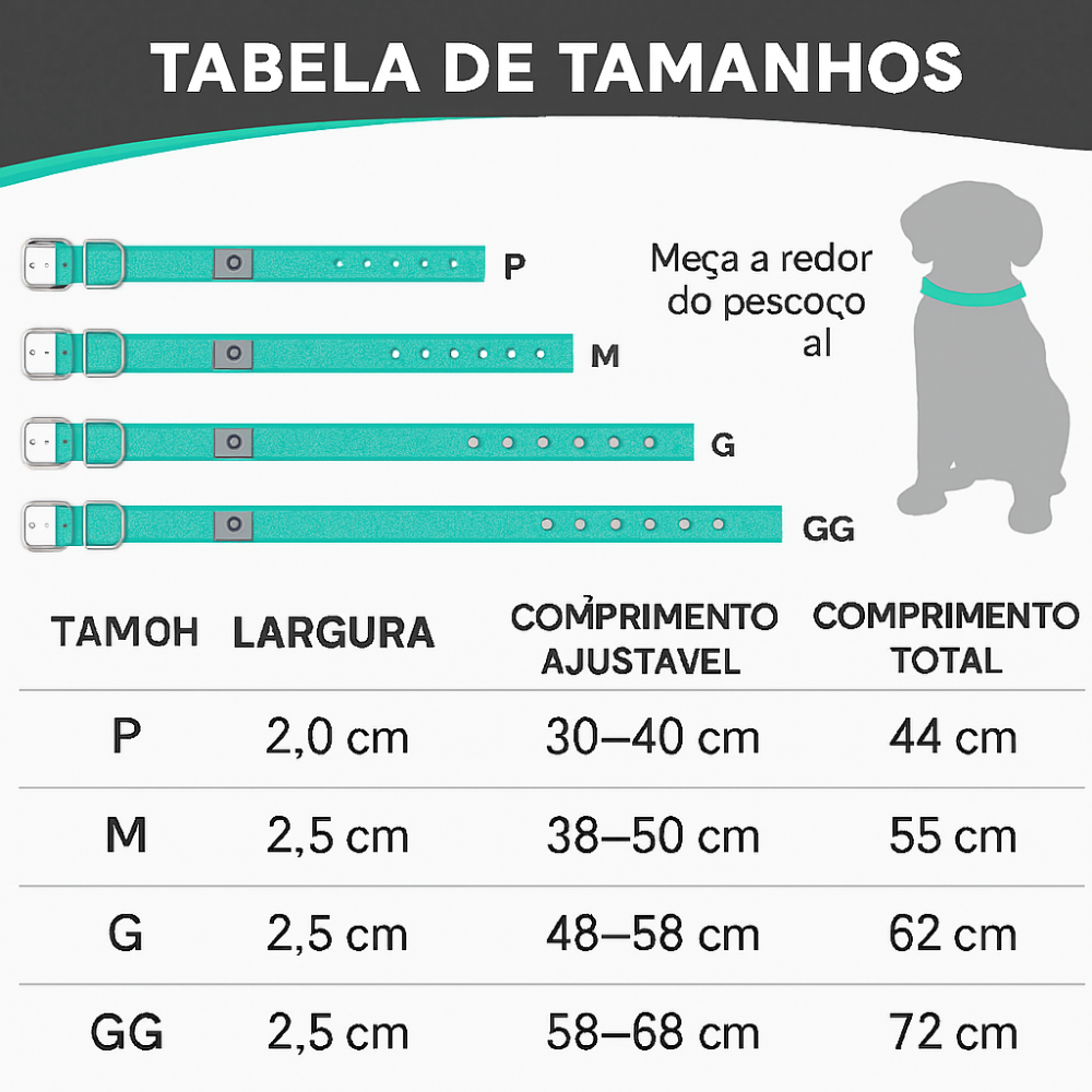 Ajuste perfeito disponível em vários tamanhos, garantindo conforto para cães pequenos, médios e grandes.