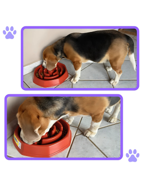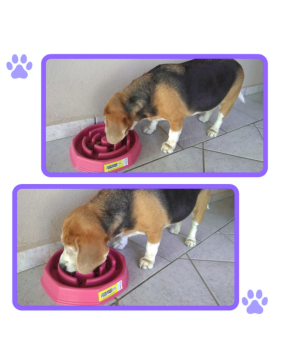 Meu cachorro sempre comia rápido demais e passava mal. Agora, com o comedouro lento, ele come no tempo certo e ficou muito mais tranquilo.